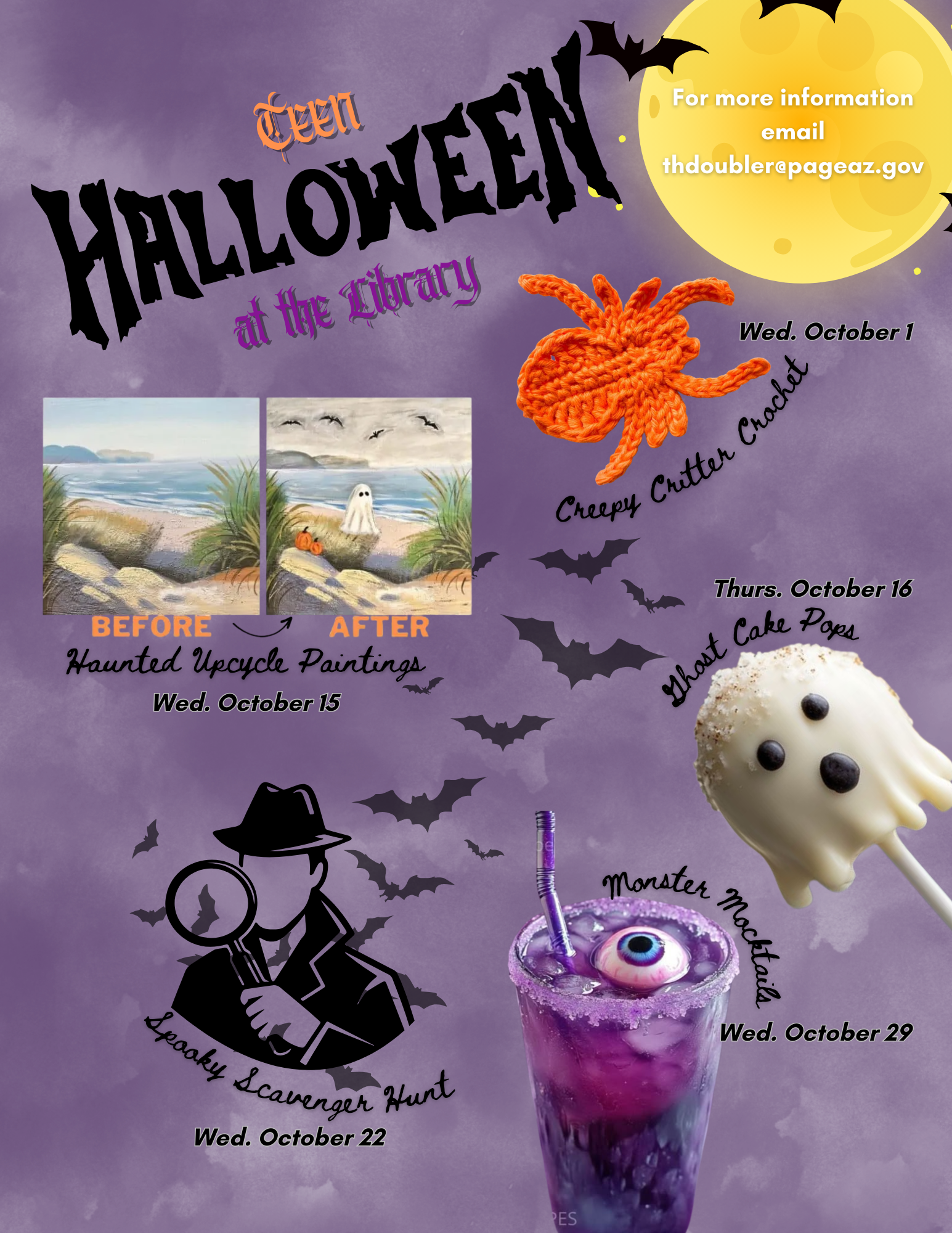 Creepy Critter Crochet Location Page Public Library 479 S. Lake Powell Blvd., Page AZ, 86040 Date October 01, 2025 Time 4:30 PM to 5:30 PM Department Page Public Library Category Teen's Calendar Description |
