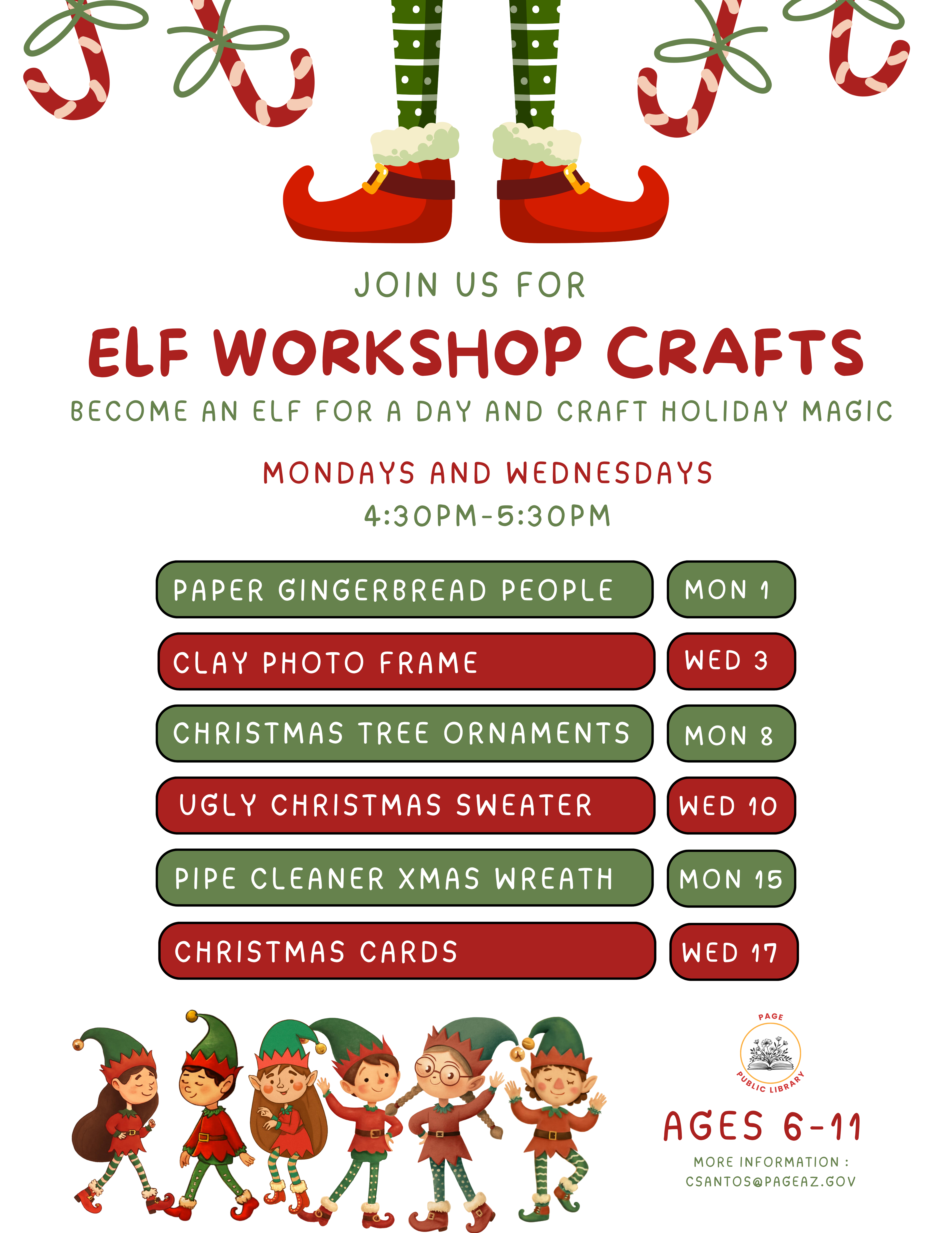 Children - Paper Gingerbread People Location Page Public Library 479 S. Lake Powell Blvd., Page AZ, 86040 Date December 01, 2025 Time 4:30 PM to 5:30 PM Department Page Public Library Category Children's Calendar Description |