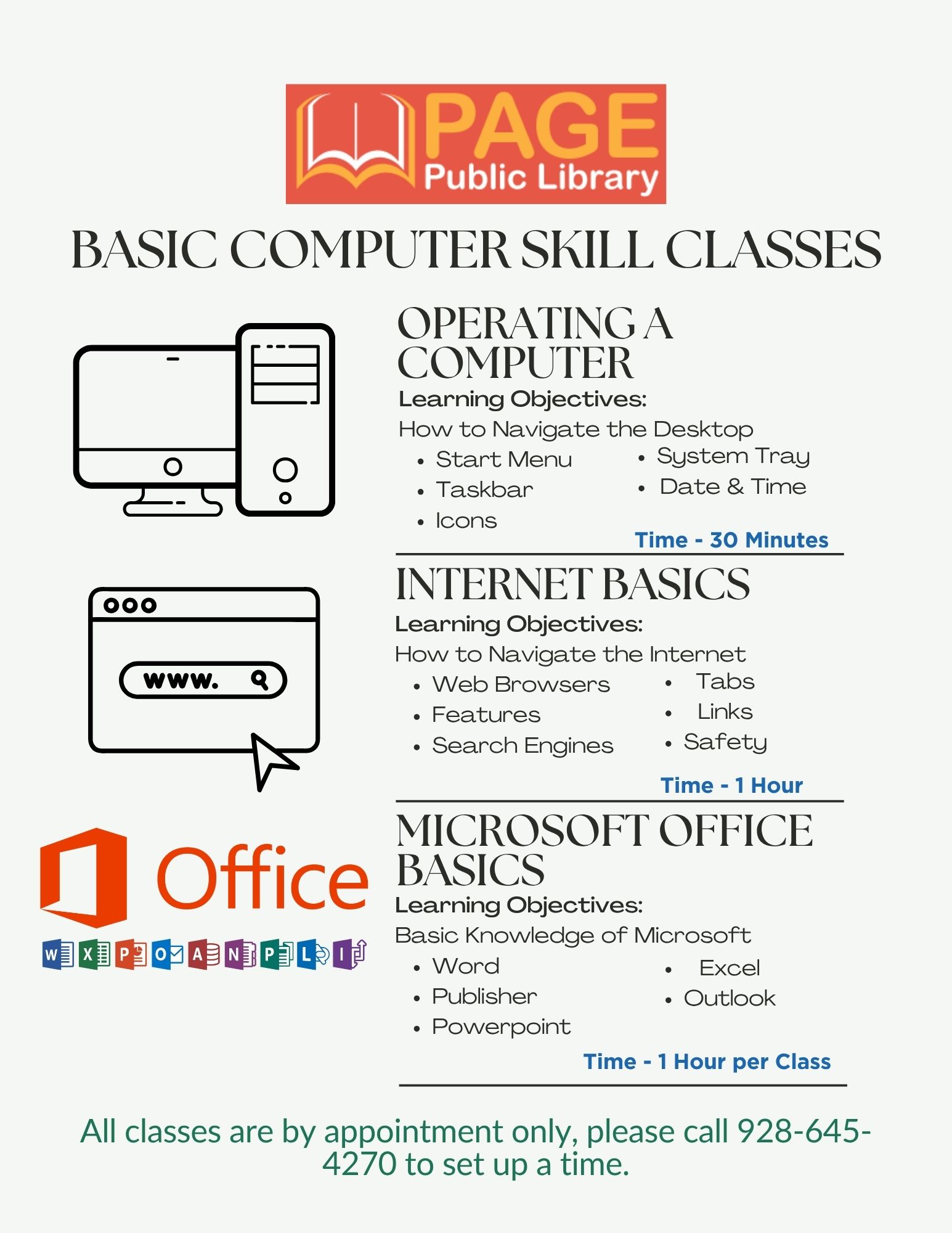 Adult's - Computer Classes Location Page Public Library 479 S. Lake Powell Blvd., Page AZ, 86040 Date February 03, 2026 Time 10:00 AM to 11:00 AM Department Page Public Library Category Adult's Calendar Description *Registration required. Please call (928) 645-4270 to reserve your spot. |