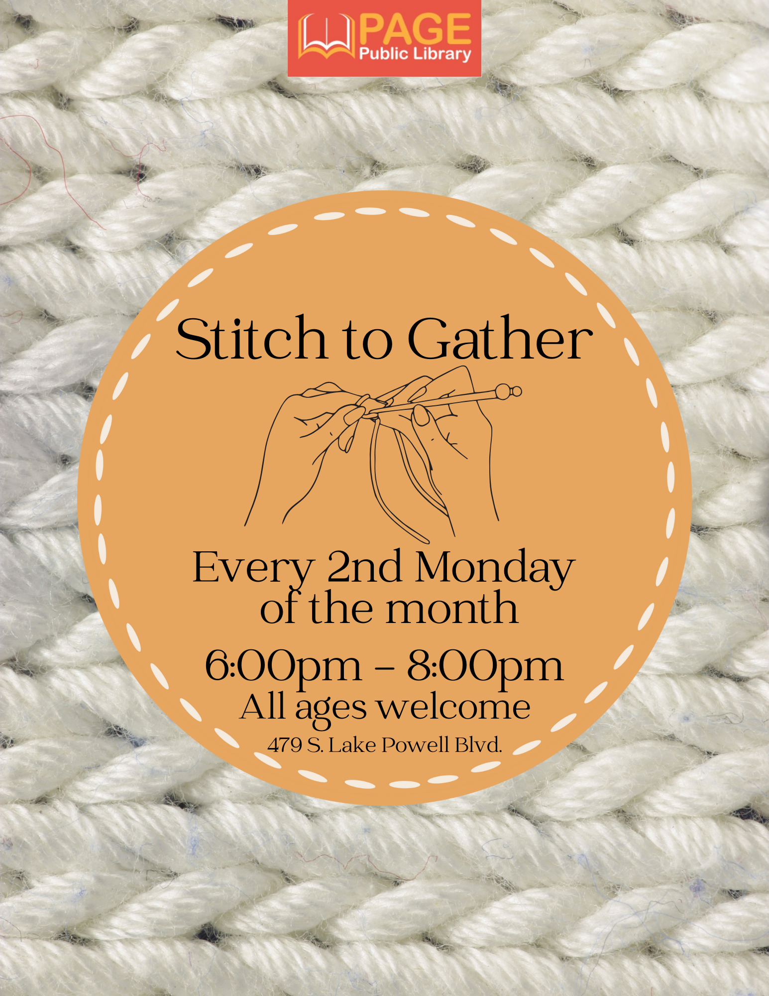 Stitch to Gather Location Page Public Library 479 S. Lake Powell Blvd., Page AZ, 86040 Date February 09, 2026 Time 6:00 PM to 8:00 PM Department Page Public Library Category Adult's Calendar Description |