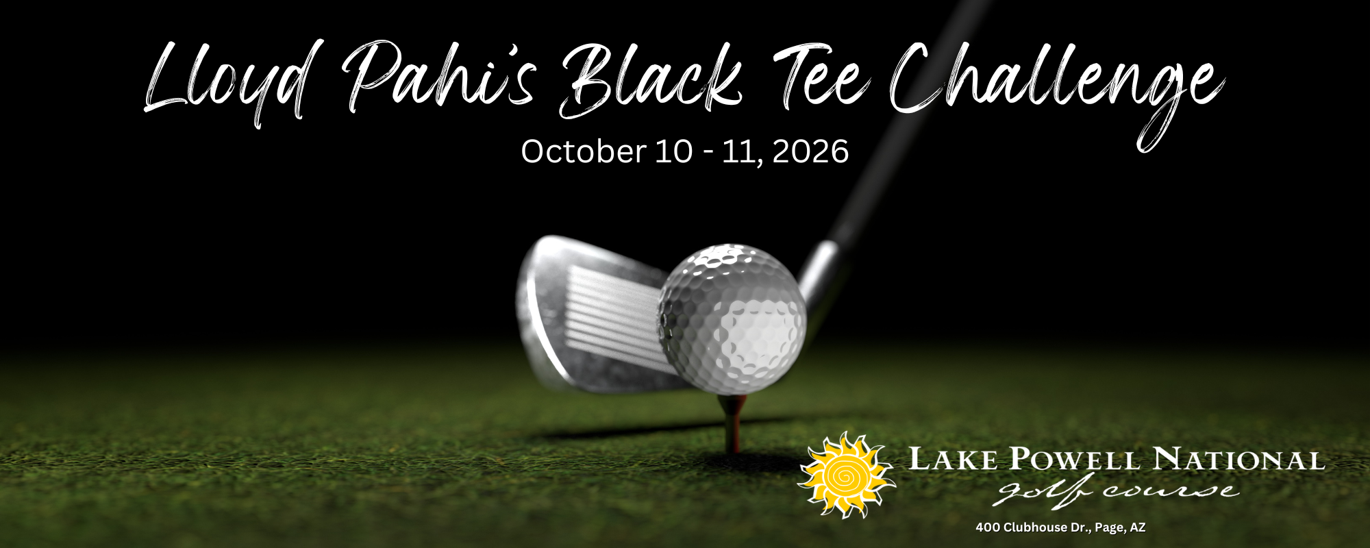 Lloyd Pahi's Black Tee Challenge Tournament Location Lake Powell National Golf Course 400 Clubhouse Dr., Page AZ, 86040 Date October 10, 2026 Time This is an all day event Department Lake Powell National Golf Course Description |