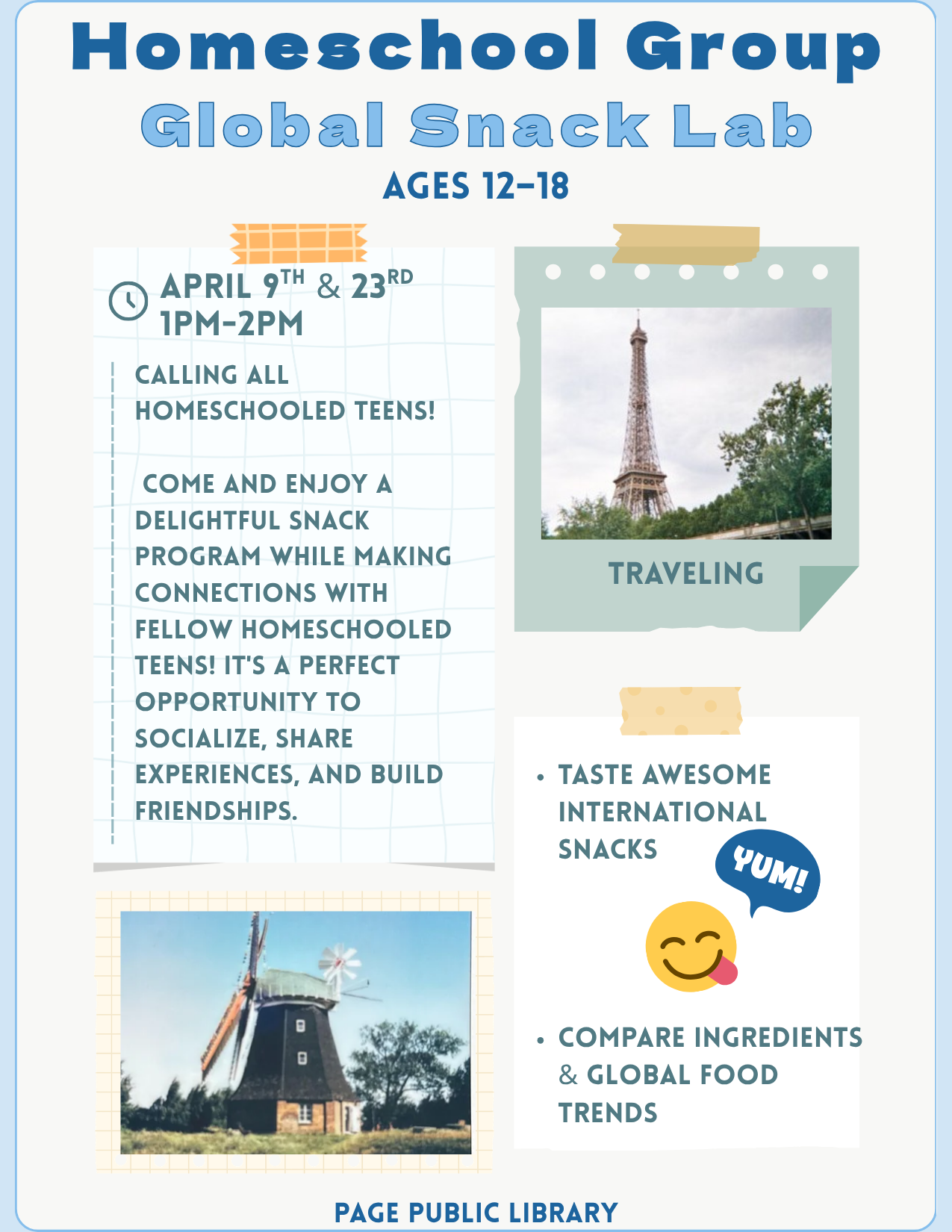 Teen's - Homeschooling Group Location Page Public Library 479 S. Lake Powell Blvd., Page AZ, 86040 Date April 09, 2026 Time 4:00 PM to 5:30 PM Repeat Bi-Weekly Department Page Public Library Category Teen's Calendar Description |
