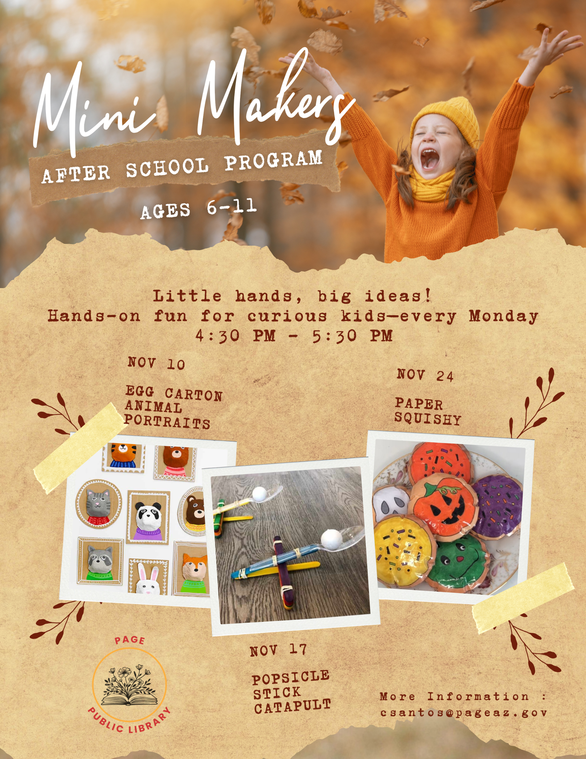 Paper Squishy Location Page Public Library 479 S. Lake Powell Blvd., Page AZ, 86040 Date November 24, 2025 Time 4:30 PM to 5:30 PM Department Page Public Library Category After School Program Description  |