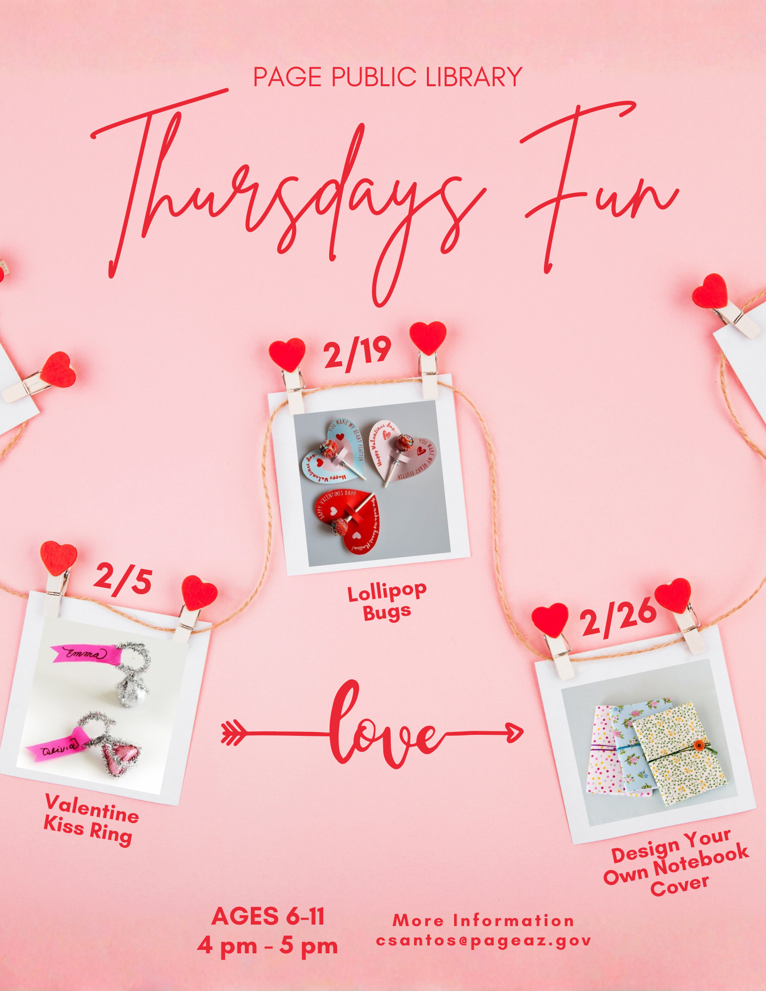 Children's After School Program - Lollipop Bugs Location Page Public Library 479 S. Lake Powell Blvd., Page AZ, 86040 Date February 19, 2026 Time 4:00 PM to 5:00 PM Department Page Public Library Category Children's Calendar Description |