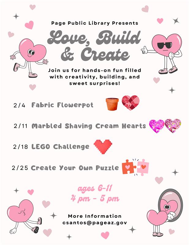 Children's After School Program - Create Your Own Puzzle Location Page Public Library 479 S. Lake Powell Blvd., Page AZ, 86040 Date February 25, 2026 Time 4:00 PM to 5:00 PM Department Page Public Library Category Children's Calendar Description |