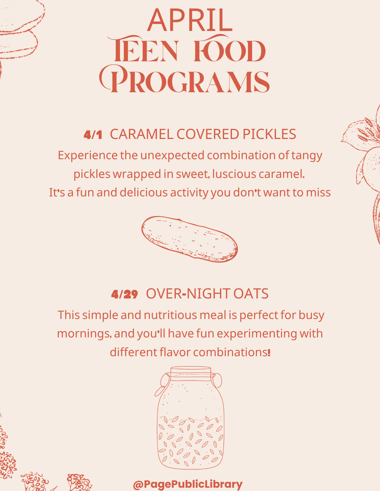 Teen After School Program - Overnight Oats Location Page Public Library 479 S. Lake Powell Blvd., Page AZ, 86040 Date April 29, 2026 Time 4:00 PM to 5:30 PM Department Page Public Library Category Teen's Calendar Description |